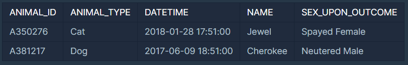 예를 들어, ANIMAL_INS 테이블과 ANIMAL_OUTS 테이블이 다음과 같다면